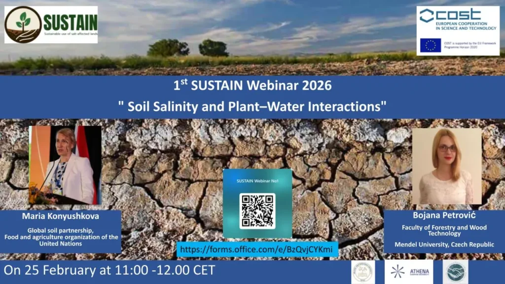 The webinar on”Soil Salinity and Plant–Water Interactions” will take place on 25 February 2026 at 11:00 CET.